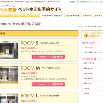 【料金】小型犬・猫(8kgまで) 1泊1,900円~ 中型犬(20kgまで) 1泊2,950円~ 大型犬(40kgまで) 1泊4,000円~