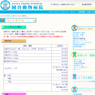 【料金】【1泊2日】小型犬:2,500円〜、3,000円〜 中型犬:3,500円 大型犬:5,000円〜 猫:2,000円〜 他