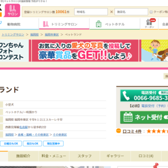 【料金】一時預かり 小型犬9.9Kg以内:¥600/ 時【消費税48円】 中型犬19.9Kg以内:¥700/ 時【消費税56円】 大型犬39.9Kg以内:¥800/ 時【消費税64円】 超大型犬40Kg以上:¥900/ 時【消費税72円】 ペットホテル 小型犬9.9Kg以内:¥3000【消費税240円】 中型犬19.9Kg以内:¥3800【消費税304円】 大型犬39.9Kg以内:¥4800【消費税384円】 超大型犬40Kg以上:¥6000【消費税480円】