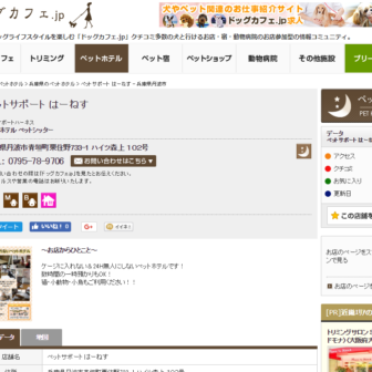 【料金】1泊; 小型犬~中型犬・猫:3000円~